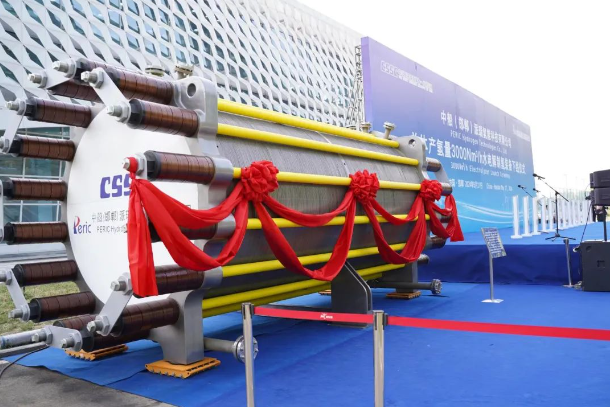 該裝備圍繞我國(guó)氫能高質(zhì)量發(fā)展重大需求,突破了大功率、高電密、寬負(fù)載、低電耗等多項(xiàng)前沿技術(shù),實(shí)現(xiàn)了單體產(chǎn)氫量由2000Nm3/h到3000Nm3/h的跨越,運(yùn)行電流密度提升17%,槽體重量降低13%,制氫系統(tǒng)具備30%-110%的動(dòng)態(tài)調(diào)節(jié)能力,能耗達(dá)到國(guó)標(biāo)一級(jí)能效標(biāo)準(zhǔn),可顯著提高單機(jī)產(chǎn)能、降低生產(chǎn)投入和運(yùn)行成本,為大規(guī)模綠氫制取提供了創(chuàng)新型解決方案。