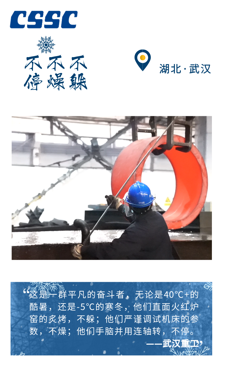 -5℃、-10℃、-20℃ …… 在這個不斷刷新寒冷指數(shù)的冬季 從未缺席中國船舶人勞作的身影 皎潔的白雪、火紅的爐膛 呼嘯的海風、疾行的足音 奏響了冬季船舶人的 冰與火之歌
