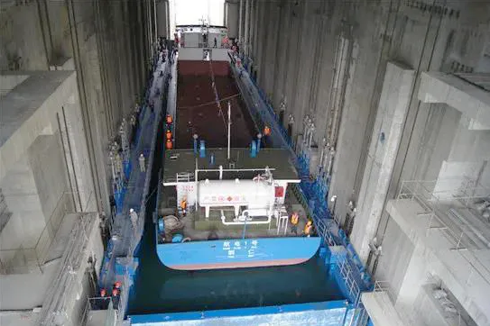 而在上述水電站過(guò)船設(shè)施工程建設(shè)中,也出現(xiàn)了中國(guó)船舶集團(tuán)旗下院所、船廠、配套企業(yè)等相關(guān)單位的身影。烏江構(gòu)皮灘水電站通航工程被視為貴州融入長(zhǎng)江、通江達(dá)海的關(guān)鍵工程。該工程線路總長(zhǎng)2306米,概算總投資29.51億元,設(shè)計(jì)通航標(biāo)準(zhǔn)為四級(jí)航道,最高通航水頭達(dá)199米,是世界上通航水頭最高、水位變幅最大的通航工程。