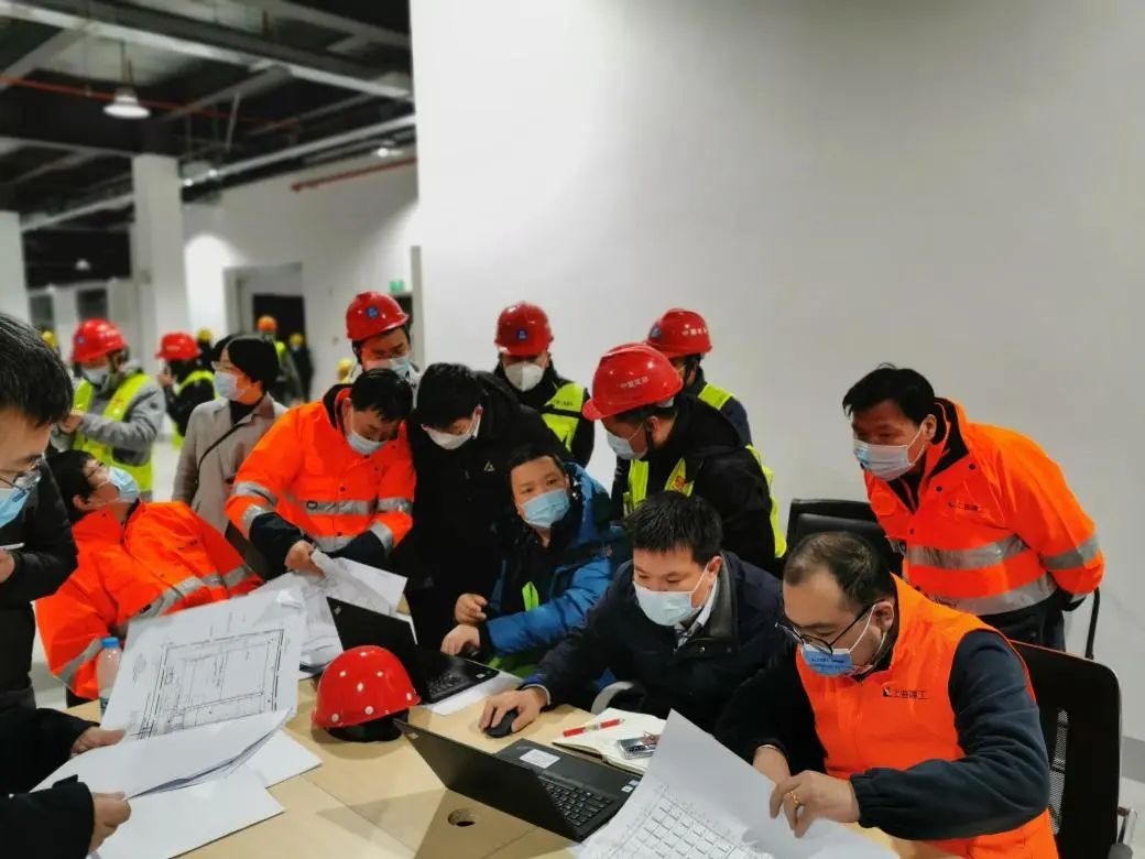 中船九院公司領導帶領項目團隊連續(xù)多日通宵在現(xiàn)場工作,及時協(xié)調(diào)工地各種情況,與集團公司相關部門并肩作戰(zhàn)、及時溝通,提高工作效能;同時堅持實時優(yōu)化設計,協(xié)調(diào)工程建設。項目設計負責人、中船九院副總建筑師王川第一時間組織團隊明確職責分工,確定了現(xiàn)場設計、后方設計、現(xiàn)場管理、外場支持等多專業(yè)協(xié)同配合機制,確保多條線同時作戰(zhàn)、運作高效。總工程師黃延驅車前往長興島專送工程保障設備,長興島實行“只進不出”,他就直接加入現(xiàn)場設計團隊,10天沒有下島。設計團隊中三位女設計師沈清清、胡雁、沈峻,更是巾幗不讓須眉,創(chuàng)造性地解決了暖風系統(tǒng)設計等一系列難題,堅守一線直到項目最終交付。項目管理團隊的戴鳳波、徐詠春、欒海林、王后軍、屈杰、倪冬輝等人把現(xiàn)場當作家,3天只在賓館住了3個小時,其余時間都在車上、辦公桌上度過。項目部顧建章、汪凱則協(xié)調(diào)運輸通行資源,解決了建設期間工程人員的基本飲食問題。與此同時,還有更多的人在后方作戰(zhàn)斗支撐,中船九院建筑一院院長曾志堅迅速組織本部設計團隊,緊急將居家辦公的相關專業(yè)骨干召回,組成了包括張瓊、瞿駸、郭鳳群、李嘯、蔣斌等18名骨干在內(nèi),建筑、結構、水、電、風、經(jīng)濟各專業(yè)齊全的團隊。之后因項目需要,胡雁、瞿革、瞿駸上島加入現(xiàn)場設計團隊。