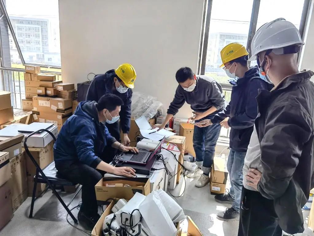七一六所黨委副書記、所長顧浩接到任務后立即組織研究部署,克服連云港本地疫情的重重困難,迅速在當?shù)丶Y專業(yè)隊伍,同時組織在滬所屬單位抽調(diào)精兵強將,聯(lián)合集團公司在滬兄弟單位,組成弱電安防施工團隊,分批上島集結開展工作。