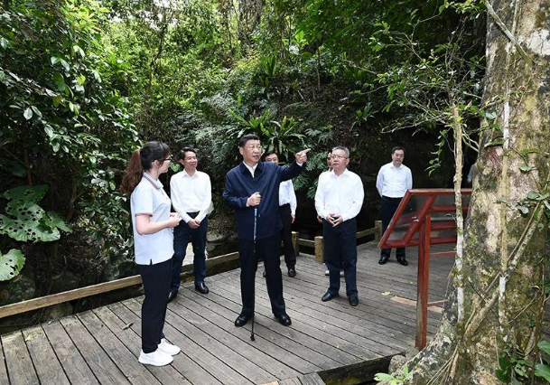 11日下午,習近平總書記到海南島中南部的五指山市考察調(diào)研。海南熱帶雨林國家公園是我國首批5個國家公園之一。習近平總書記深入五指山片區(qū),沿木棧道步行察看公園生態(tài)環(huán)境,不時停下腳步,詢問樹木生長、水源涵養(yǎng)、動植物資源保護等情況。