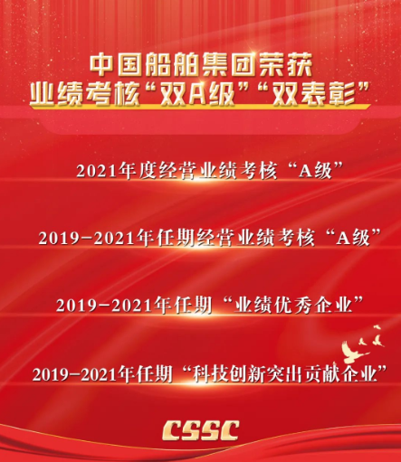 7月16日-17日,國務(wù)院國資委舉辦中央企業(yè)負(fù)責(zé)人研討班,公布了中央企業(yè)2021年度和2019-2021年任期經(jīng)營業(yè)績(jī)考核結(jié)果,中國船舶集團(tuán)榮獲年度和任期考核“雙A級(jí)”,并被評(píng)為任期“業(yè)績(jī)優(yōu)秀企業(yè)”和“科技創(chuàng)新突出貢獻(xiàn)企業(yè)”。