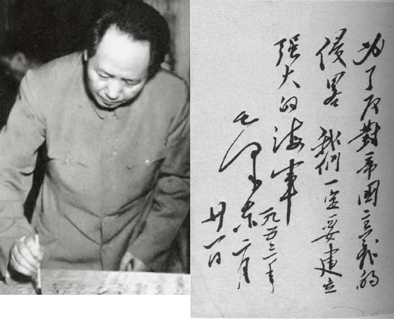 1953年,毛澤東同志視察“長(zhǎng)江”艦,在艦上揮毫寫下“為了反對(duì)帝國(guó)主義的侵略,我們一定要建立強(qiáng)大的海軍”。