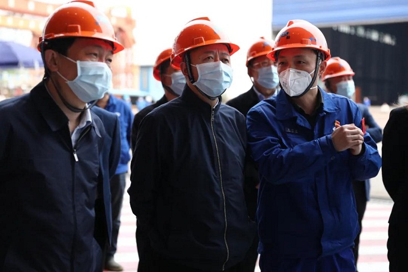 ????王江平一行深入車間實(shí)地考察了重點(diǎn)在制產(chǎn)品生產(chǎn)情況,認(rèn)真聽(tīng)取了武船集團(tuán)積極參與疫情防控、有序推進(jìn)復(fù)工復(fù)產(chǎn)和疫情影響等方面的情況匯報(bào)。