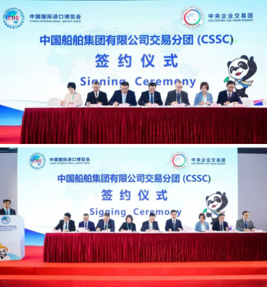 簽約儀式上,中國(guó)船舶集團(tuán)所屬?gòu)V船國(guó)際股份有限公司、中船黃埔文沖船舶有限公司、滬東重機(jī)有限公司、陜西柴油機(jī)重工有限公司、中國(guó)船舶物資公司、中國(guó)船舶貿(mào)易有限公司、上海外高橋造船有限公司等7家企業(yè)與西門子、ABB、康士伯、瓦錫蘭、日本大發(fā)、韓國(guó)現(xiàn)代等19家合作商,共進(jìn)行了23個(gè)項(xiàng)目簽約,簽約總金額共計(jì)1.14億美元,涉及軸帶發(fā)電機(jī)、主發(fā)電機(jī)、主柴油機(jī)、閥門遙控系統(tǒng)、柴油機(jī)零部件、曲軸等產(chǎn)品。另外,中國(guó)船舶集團(tuán)參加本屆進(jìn)博會(huì)專業(yè)觀眾觀展活動(dòng)的人數(shù)也較往年有明顯提升。