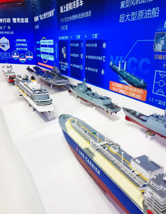 這次中國船舶集團(tuán)展區(qū)以“向海圖強(qiáng),創(chuàng)新引領(lǐng)”為主題,以“全面建設(shè)世界一流船舶集團(tuán)”的戰(zhàn)略目標(biāo)和“引領(lǐng)行業(yè)發(fā)展、支撐國防建設(shè)、服務(wù)國家戰(zhàn)略”的企業(yè)使命為主線,圍繞具有代表性、突破性、標(biāo)志性、引領(lǐng)性的自主品牌,以及高質(zhì)量裝備和工程項(xiàng)目,全面展示集團(tuán)公司在穩(wěn)定經(jīng)濟(jì)發(fā)展、帶動(dòng)科技創(chuàng)新、服務(wù)民生保障、推動(dòng)中國制造走向世界進(jìn)程中所取得的成就。