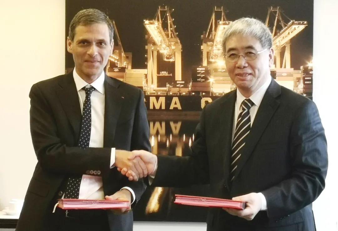 中國船舶集團董事長雷凡培、達飛集團董事長兼首席執(zhí)行官魯道夫·薩德互換簽約文本