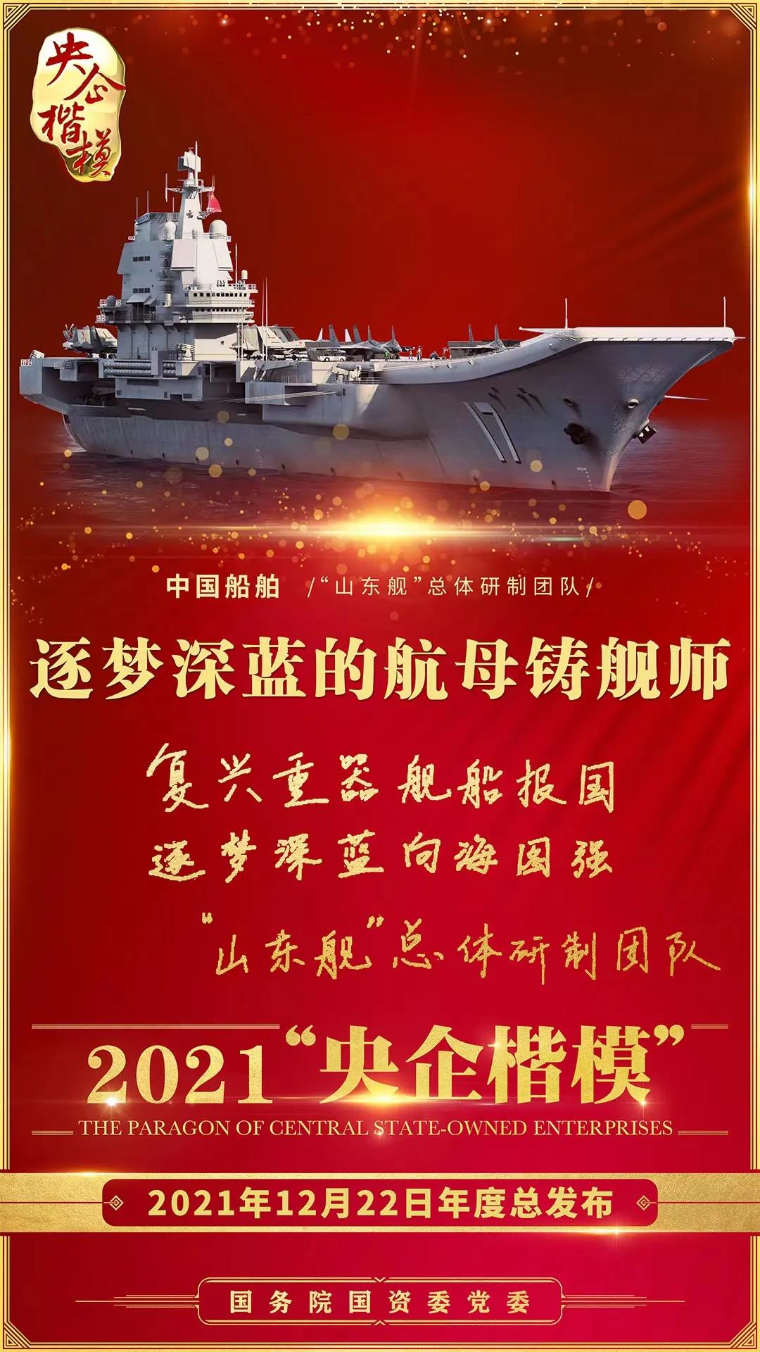 12月22日,國務(wù)院國資委黨委舉行2021年第二批“央企楷模”發(fā)布暨年度總發(fā)布儀式,中國船舶“山東艦”總體研制團(tuán)隊榮獲2021年“央企楷模”榮譽(yù)稱號。繼“奮斗者”號萬米載人潛水器研發(fā)團(tuán)隊獲評2020年“央企楷模”榮譽(yù)稱號后,中國船舶集團(tuán)再獲此殊榮。