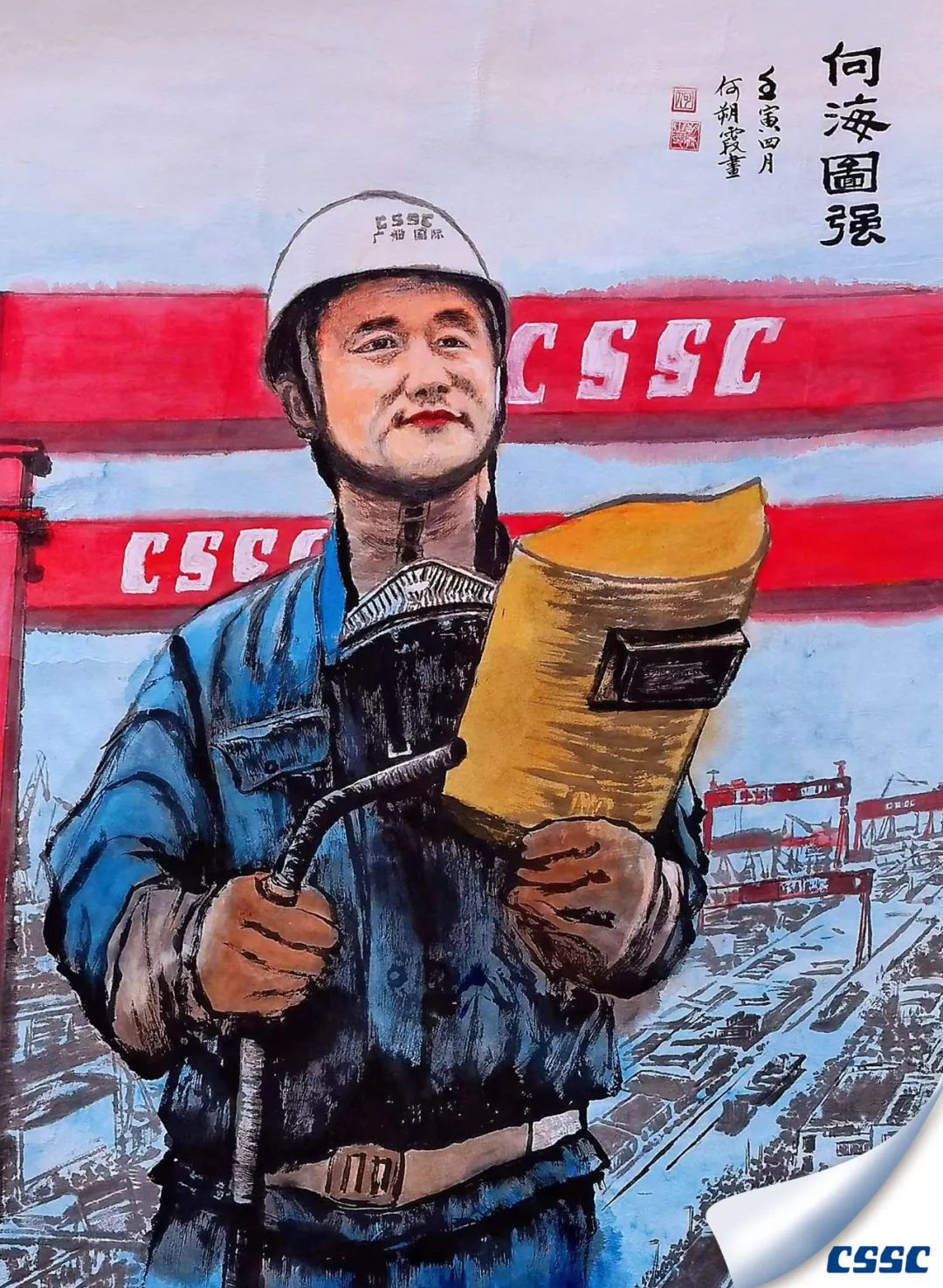 繪畫(huà)大師用五彩畫(huà)筆將全國(guó)五一勞動(dòng)獎(jiǎng)獲得者電焊工馮文虎的形象躍然卷上。