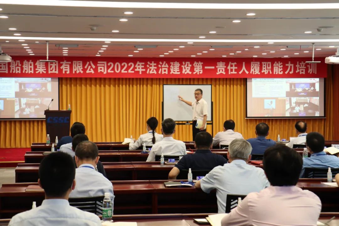 會上,中國船舶集團旗下黃埔文沖、財務公司、七〇四所、平陽重工分別作了法治工作經驗交流。根據(jù)會議安排,當天下午,集團公司首次成員單位法治建設第一責任人履職能力培訓正式開班,崔銳捷為全體學員進行授課,開展了集中培訓,并將進行自學和線上考試。