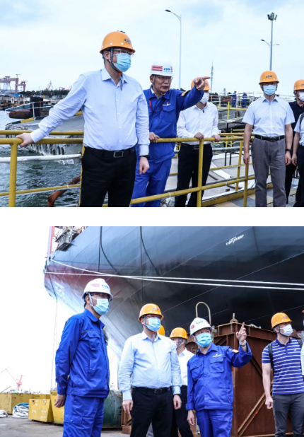 9月22日,中國船舶集團(tuán)有限公司黨組副書記、總經(jīng)理楊金成到集團(tuán)公司旗下江南造船、滬東中華調(diào)研指導(dǎo)工作。楊金成聽取了江南造船、滬東中華近期安全生產(chǎn)、疫情防控、保密保衛(wèi)、信訪維穩(wěn)等工作及生產(chǎn)經(jīng)營情況的匯報,并登上兩家企業(yè)船塢碼頭查看了重點在建船舶進(jìn)展情況。