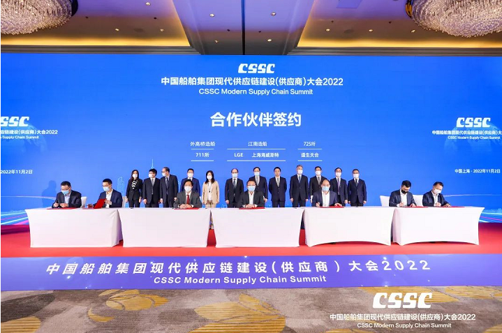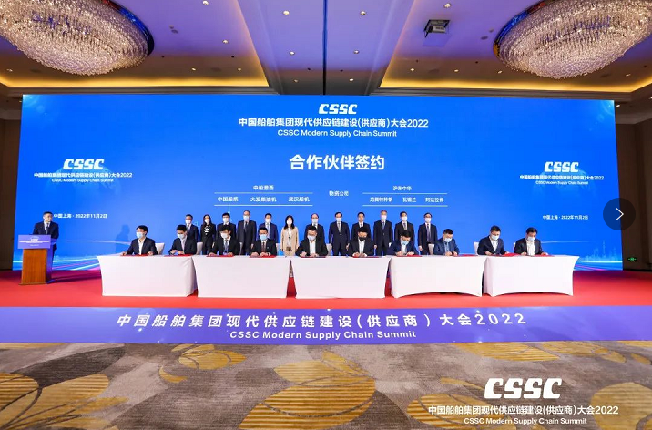 11月2日,中國(guó)船舶集團(tuán)有限公司2022現(xiàn)代供應(yīng)鏈建設(shè)(供應(yīng)商)大會(huì)在上海舉行。會(huì)議旨在貫徹落實(shí)黨的二十大精神,充分發(fā)揮中國(guó)船舶集團(tuán)作為中國(guó)船舶工業(yè)產(chǎn)業(yè)鏈鏈長(zhǎng)的主體支撐和融通帶動(dòng)作用,打造船舶工業(yè)現(xiàn)代供應(yīng)鏈高端交流平臺(tái),凝聚廣泛共識(shí),深化務(wù)實(shí)合作,服務(wù)國(guó)家戰(zhàn)略,共同致力建設(shè)和維護(hù)穩(wěn)定、安全、暢通、高效、可控的全球產(chǎn)業(yè)鏈供應(yīng)鏈體系,共同促進(jìn)產(chǎn)業(yè)的高端化、綠色化和智能化轉(zhuǎn)型,共同引領(lǐng)中國(guó)船舶工業(yè)高質(zhì)量發(fā)展,為“造船強(qiáng)國(guó)”和上海“五大中心”建設(shè)貢獻(xiàn)中國(guó)船舶力量。
