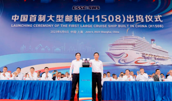 中國船舶集團黨組副書記、總經(jīng)理楊金成宣布大型郵輪出塢正式啟動,并與上海市委常委、浦東新區(qū)區(qū)委書記朱芝松共同推動啟動裝置。中國船舶集團黨組成員、副總經(jīng)理孫偉致辭。