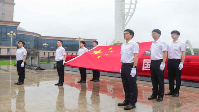 全體干部職工精神煥發(fā),以崇高的敬意,向國旗、向偉大的祖國致敬。