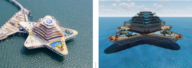 以濱海城市為依托,該方案重點(diǎn)建設(shè)需求旺盛、基礎(chǔ)好、見效快的“海洋文旅+深海養(yǎng)殖+海上風(fēng)電+海洋信息管網(wǎng)”4個(gè)要素單元,釋放旅游、養(yǎng)殖、綠色能源耦合效應(yīng)。綜合體采用模塊化設(shè)計(jì)、區(qū)域化協(xié)同部署,由濱海向深遠(yuǎn)海帶狀輻射,布局建設(shè)游輪游艇群、養(yǎng)殖文旅平臺、深海養(yǎng)殖產(chǎn)業(yè)園、分布式海上風(fēng)電場及智能微電網(wǎng)、深海移動(dòng)養(yǎng)殖工廠和海洋信息管網(wǎng)等風(fēng)漁文旅結(jié)合項(xiàng)目。以郵輪游艇連接海上設(shè)施,構(gòu)建海上旅游娛樂交通網(wǎng),以中小型郵輪航線實(shí)現(xiàn)沿海城市綜合體間串聯(lián),構(gòu)建沿海城市海上旅游觀光帶,同時(shí)培育郵輪與康養(yǎng)休閑岸海互動(dòng)融合模式,捕捉、帶動(dòng)、滿足多元化潛在消費(fèi)需求,打造風(fēng)漁文旅等一二三產(chǎn)業(yè)融合新業(yè)態(tài),形成沿海藍(lán)色海洋經(jīng)濟(jì)帶。