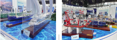 重點(diǎn)展示奮力摘取造船業(yè)最后一顆明珠的首制國產(chǎn)大型郵輪,以風(fēng)、光、甲醇裝備等為主體的綠色船舶等高端海洋裝備、以“商業(yè)模式創(chuàng)新+創(chuàng)新技術(shù)應(yīng)用”為引領(lǐng)的海洋文旅、深海養(yǎng)殖、海上風(fēng)電等新興海洋經(jīng)濟(jì)裝備、踐行“服務(wù)國家戰(zhàn)略”企業(yè)使命的與自然資源部和廣東省合作項(xiàng)目成果等,展現(xiàn)了中國船舶集團(tuán)作為世界第一造船集團(tuán)的總體實(shí)力、企業(yè)使命。