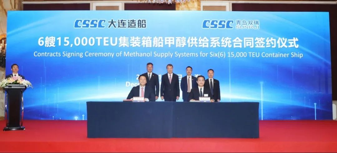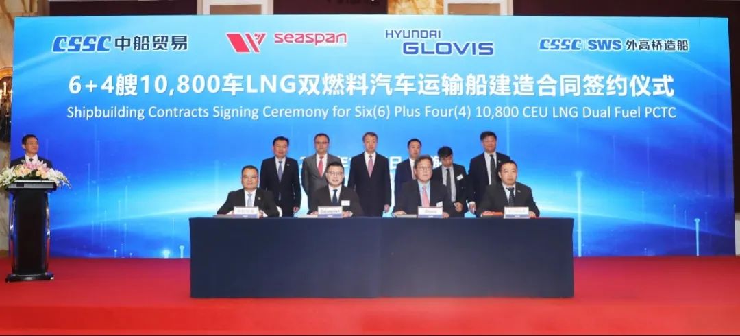 簽約儀式上,外高橋造船、中船貿(mào)易與Seaspan、現(xiàn)代Glovis簽署了6+4艘10800車LNG雙燃料PCTC船項目;廣船國際、中船貿(mào)易與HMM、現(xiàn)代Glovis簽署了6+4艘10800車LNG雙燃料PCTC船項目;北海造船、中船貿(mào)易與北銀金租、山東海運簽署了4艘325000噸超?型甲醇雙燃料礦砂船項目;江南造船、中船貿(mào)易與太平洋氣體簽署了3艘99000方VLEC船項目;黃埔文沖、中船貿(mào)易與Benelux公司簽署了2+1艘48000方LPG船項目;中船澄西、中船貿(mào)易與工銀金租簽署了4艘82600噸散貨船項目;大連造船與七二五所青島雙瑞簽署了15000TEU集裝箱船甲醇供應(yīng)系統(tǒng)項目。
