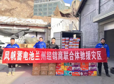 12月21日,風(fēng)帆公司聯(lián)合甘肅蓄電池經(jīng)銷商為地震災(zāi)區(qū)臨時救助點提供了飲用水、方便面、棉衣生活物資,支援抗震救災(zāi)工作。