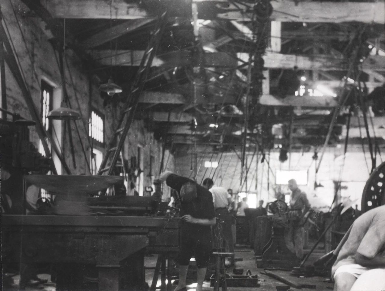 1934年武漢,上世紀(jì)30年代,武昌造船成立之初,工人們以手工作業(yè)“敲敲打打”形式開(kāi)展修造船業(yè)務(wù)。修造的船只大多為100~300噸、鋼肋骨與木殼結(jié)構(gòu),僅有少量是鋼鉚接船體。建造的船只只能在長(zhǎng)江上航行跑跑運(yùn)輸。為了生存和救國(guó),船廠還建造一些農(nóng)用機(jī)械器具、槍支,以輔助民生、支援抗日。