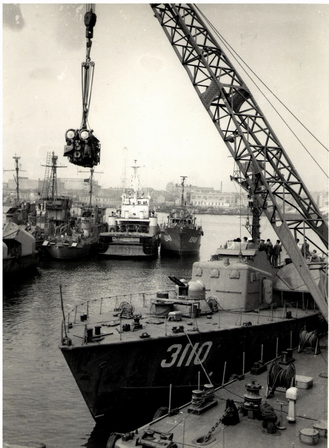 1950年廣州1950年,萬(wàn)山海戰(zhàn)功臣“前進(jìn)號(hào)”炮艇在工廠下水。