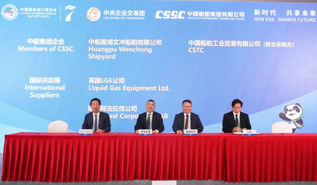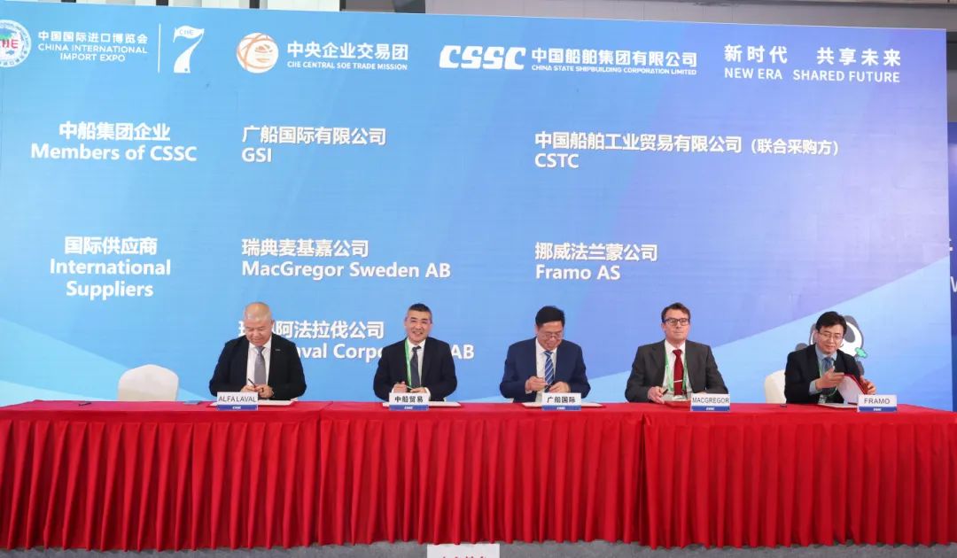 中國船舶集團有限公司黨組成員、副總經(jīng)理盛紀(jì)綱應(yīng)邀參加第七屆進博會暨虹橋國際經(jīng)濟論壇開幕式,出席11月6日下午舉行的第七屆進博會國資委中央企業(yè)交易團中國船舶交易分團采購集中簽約儀式并致辭。