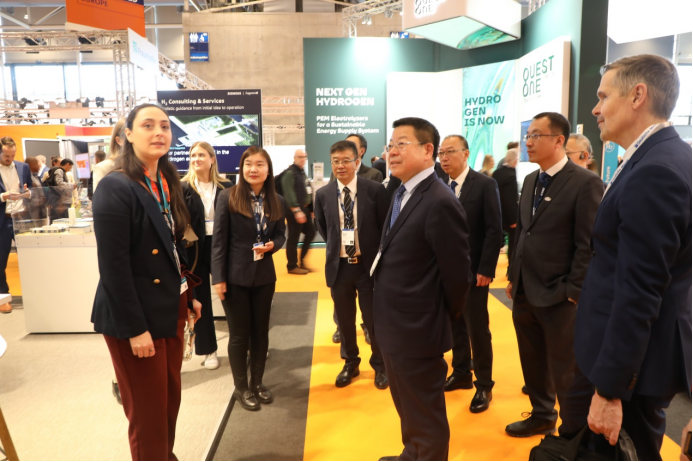 展會(huì)期間,中船集團(tuán)舉辦了電解水制氫設(shè)備、超高溫大型工業(yè)熱泵、智能裝備解決方案等30余場專題推介會(huì),發(fā)布了全球單體最大3000立方電解水制氫設(shè)備,與德國、瑞典兩家客戶簽約電解水制氫項(xiàng)目合作協(xié)議,與全球眾多客戶進(jìn)行了技術(shù)與產(chǎn)品交流,深入推進(jìn)國際市場營銷,進(jìn)一步提升了中船集團(tuán)新興產(chǎn)業(yè)的國際影響力。此外,中船集團(tuán)還組織相關(guān)成員單位赴德國、法國等地,與林德、德希尼布和施耐德等全球知名跨國企業(yè)進(jìn)行了推介交流與合作洽談,進(jìn)一步鞏固合作關(guān)系,為后續(xù)深化合作奠定基礎(chǔ)。同時(shí),組織與中國國機(jī)集團(tuán)、國家能源集團(tuán)等中國企業(yè),就展覽展會(huì)、品牌宣傳、國際項(xiàng)目合作等方面進(jìn)行交流,攜手拓展國際市場。