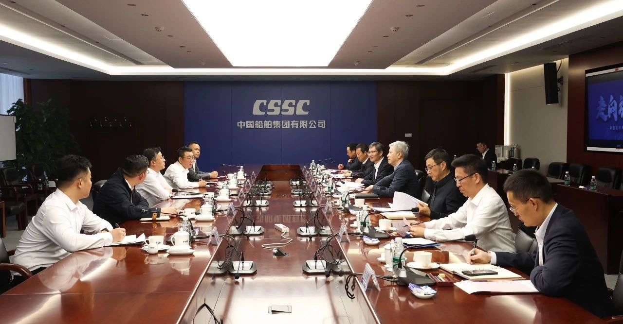 4月17日,中國(guó)船舶集團(tuán)有限公司黨組書(shū)記、董事長(zhǎng)徐鵬在集團(tuán)總部會(huì)見(jiàn)了來(lái)訪的山東海洋集團(tuán)有限公司黨委書(shū)記、董事長(zhǎng)姜國(guó)棟一行,雙方就進(jìn)一步深化戰(zhàn)略合作、實(shí)現(xiàn)共同發(fā)展進(jìn)行深入交流并達(dá)成共識(shí)。中船集團(tuán)黨組成員、副總經(jīng)理胡賢甫參加會(huì)見(jiàn)。