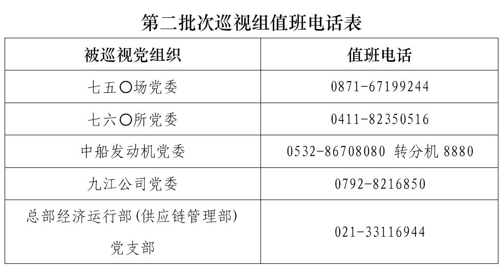 巡視期間,集團(tuán)公司黨組巡視組設(shè)置值班電話和聯(lián)系信箱,主要受理反映被巡視黨組織領(lǐng)導(dǎo)班子及其成員、下一級(jí)黨組織領(lǐng)導(dǎo)班子主要負(fù)責(zé)人和重點(diǎn)崗位領(lǐng)導(dǎo)干部問(wèn)題的來(lái)信、來(lái)電、來(lái)訪,重點(diǎn)關(guān)注違反政治紀(jì)律、組織紀(jì)律、廉潔紀(jì)律、群眾紀(jì)律、工作紀(jì)律、生活紀(jì)律以及巡視整改等方面問(wèn)題反映。第二批次巡視受理信訪截止時(shí)間為8月18日。