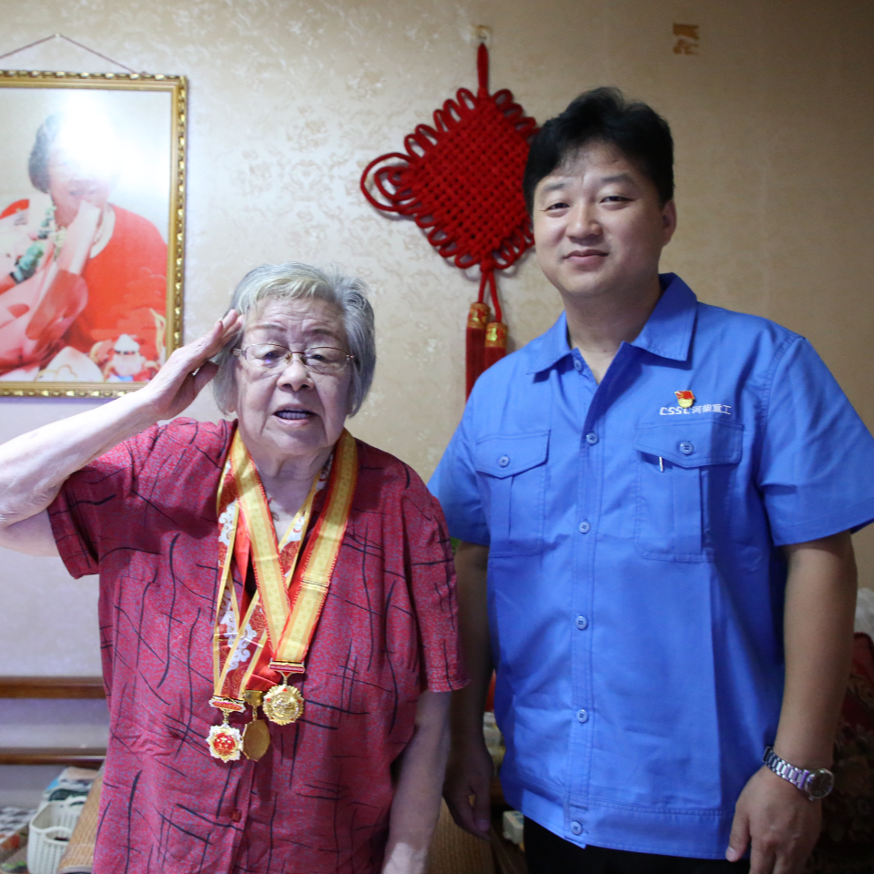 在紀念中國人民抗日戰(zhàn)爭暨世界反法西斯戰(zhàn)爭勝利80周年之際,中國船舶集團有限公司黨組副書記、董事賈海英走訪慰問抗戰(zhàn)老兵焦英杰,頒發(fā)“中國人民抗日戰(zhàn)爭勝利80周年”紀念章,并代表集團公司黨組向他致以崇高敬意和誠摯問候。
