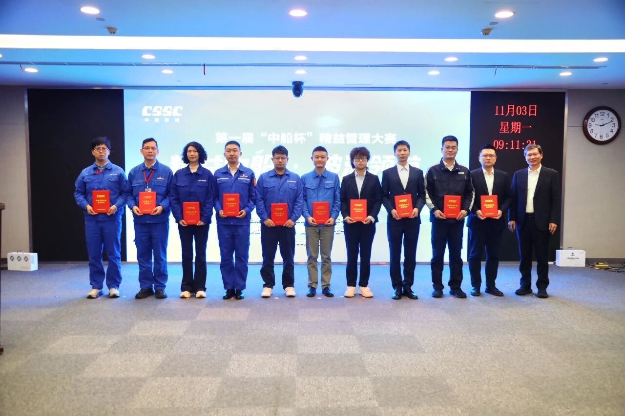 11月3日,中國船舶集團(tuán)有限公司第一屆“中船杯”精益管理大賽成果發(fā)布會成功舉辦。中船集團(tuán)黨組成員、副總經(jīng)理胡賢甫出席發(fā)布會,為獲得精益改善一等獎和“精益班組”的代表頒獎并講話。