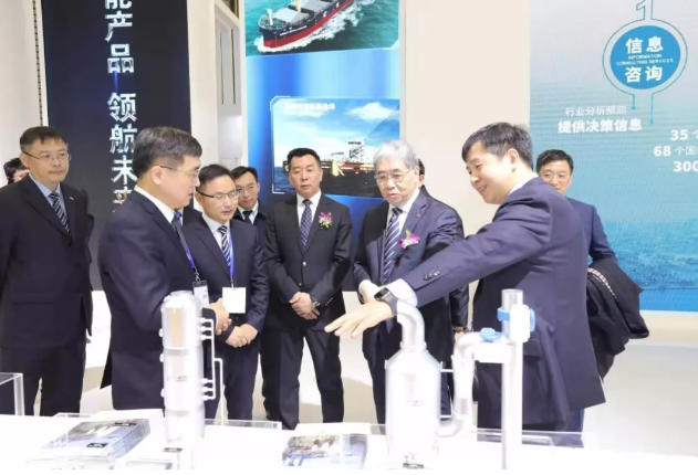???之后,雷凡培、楊金成陪同姜明寶、吳金城巡展,參觀了中遠(yuǎn)海運(yùn)、招商局集團(tuán)、挪威國家館等展臺,并赴卡特彼勒公司、MTU公司、GTT公司開展交流。