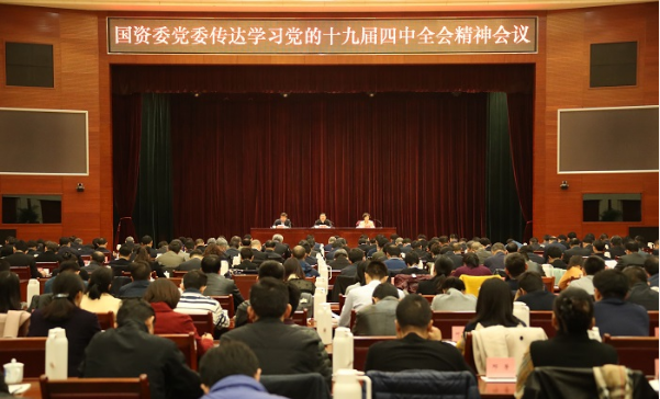 ????11月8日,國(guó)資委黨委召開傳達(dá)學(xué)習(xí)黨的十九屆四中全會(huì)精神會(huì)議,對(duì)國(guó)資委直屬機(jī)關(guān)、中央企業(yè)和直管協(xié)會(huì)學(xué)習(xí)貫徹落實(shí)工作進(jìn)行部署安排。國(guó)資委黨委書記、主任郝鵬結(jié)合參加黨的十九屆四中全會(huì)現(xiàn)場(chǎng)聆聽(tīng)習(xí)近平總書記重要講話的切身體會(huì),結(jié)合國(guó)資國(guó)企實(shí)際作了宣講,強(qiáng)調(diào)要深入學(xué)習(xí)貫徹黨的十九屆四中全會(huì)精神特別是習(xí)近平總書記在全會(huì)上的重要講話精神,增強(qiáng)“四個(gè)意識(shí)”、堅(jiān)定“四個(gè)自信”、做到“兩個(gè)維護(hù)”,切實(shí)把思想和行動(dòng)統(tǒng)一到全會(huì)精神上來(lái),進(jìn)一步完善國(guó)資國(guó)企制度體系,深化國(guó)資國(guó)企改革,增強(qiáng)國(guó)有經(jīng)濟(jì)競(jìng)爭(zhēng)力、創(chuàng)新力、控制力、影響力、抗風(fēng)險(xiǎn)能力,做強(qiáng)做優(yōu)做大國(guó)有資本,加快培育具有全球競(jìng)爭(zhēng)力的世界一流企業(yè),為實(shí)現(xiàn)“兩個(gè)一百年”奮斗目標(biāo)、實(shí)現(xiàn)中華民族偉大復(fù)興的中國(guó)夢(mèng)作出更大貢獻(xiàn)。國(guó)資委副主任、黨委委員趙愛(ài)明傳達(dá)了全會(huì)公報(bào)和《中共中央關(guān)于堅(jiān)持和完善中國(guó)特色社會(huì)主義制度、推進(jìn)國(guó)家治理體系和治理能力現(xiàn)代化若干重大問(wèn)題的決定》(以下簡(jiǎn)稱《決定》)主要精神。國(guó)資委副主任、黨委委員任洪斌主持會(huì)議。