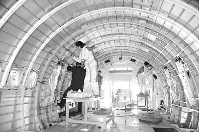 我國(guó)具有完全自主知識(shí)產(chǎn)權(quán)的C919大型客機(jī)。新華社發(fā)