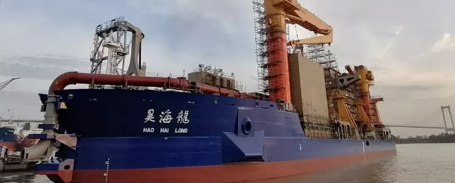 10月31日,黃埔文沖分別為美國Del Monte公司建造的600FEU全冷箱集裝箱船1號(hào)船和佛山市盈昊泰貿(mào)易有限公司建造的7800千瓦自航絞吸式挖泥船順利出塢。7800千瓦自航絞吸式挖泥船總長148米,最大挖深38米,配置了挖巖、挖黏土和挖沙等3種不同類型的絞刀,適用于挖掘淤泥、黏土、密實(shí)砂質(zhì)土、礫石、強(qiáng)風(fēng)化巖以及抗壓強(qiáng)度在50兆帕以內(nèi)的中弱風(fēng)化巖; 配備雙槳、雙轉(zhuǎn)動(dòng)導(dǎo)流管、全電力驅(qū)動(dòng)裝置,總裝機(jī)功率達(dá)25260千瓦,為亞洲最大功率自航絞吸式挖泥船,是我國新一代沿海水域、港口、航道疏浚、吹填的“神兵利器”。