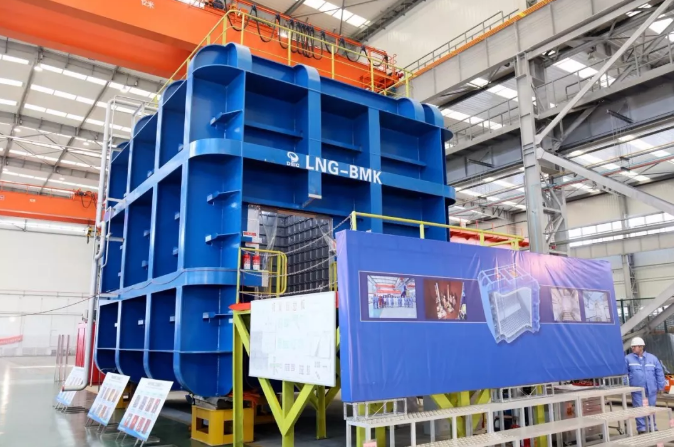 ????11月26日,中國船舶集團(tuán)所屬大連船舶重工集團(tuán)有限公司舉行“薄膜型液化天然氣運輸船技術(shù)研究”科研專項MarkⅢ型液化天然氣船全封閉模擬艙建造完工暨GTT和船級社頒證儀式。
