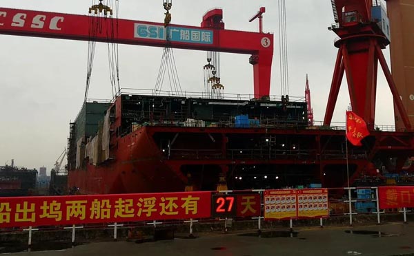 ????3月4日,中國(guó)船舶集團(tuán)所屬?gòu)V船國(guó)際有限公司建造的阿爾及利亞豪華客滾船完成3個(gè)艉跳板的裝焊任務(wù),建造進(jìn)度又推進(jìn)了一大步。該船共有4個(gè)艉門、3個(gè)艉跳板,每個(gè)跳板都承擔(dān)著不同的功能。這樣的設(shè)計(jì),首先可以實(shí)現(xiàn)人車分流,更加安全