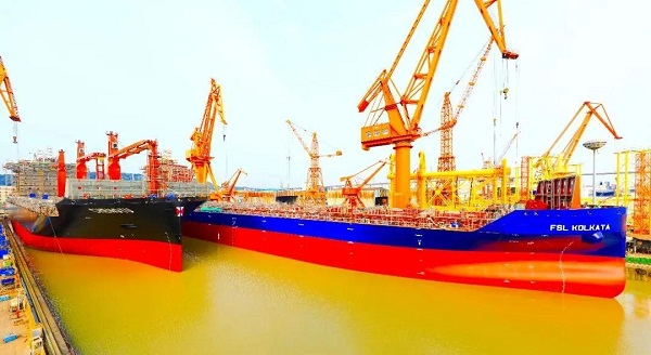????4月10日,中國(guó)船舶集團(tuán)旗下黃埔文沖為希臘COSMOSHOP公司建造的1500TEU.GO集裝箱船4號(hào)船H5655船以及為新加坡太古公司建造的2350TEU.C集裝箱船4號(hào)船H5529船