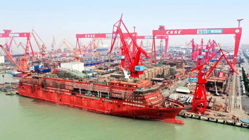????建設薄板平面分段流水線主要是為了滿足廣船國際豪華客滾船和中小型豪華郵輪等高端船舶產(chǎn)品的建造需要。這類型船因為具有龐大的上層建筑,為減輕船舶自重,提高航速以及降低船舶重心等,通常會大量使用僅有3~4毫米的薄板來進行建造。