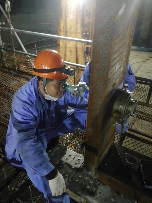 為確保VLCC照光工作順利完成,大船集團(tuán)輪機(jī)工藝小組,提前一周就進(jìn)入“作戰(zhàn)”狀態(tài),他們每天堅(jiān)持深入現(xiàn)場,從細(xì)小處入手,檢查每一個(gè)可能影響軸舵系施工質(zhì)量的隱患,加班加點(diǎn)成了工作的常態(tài)。