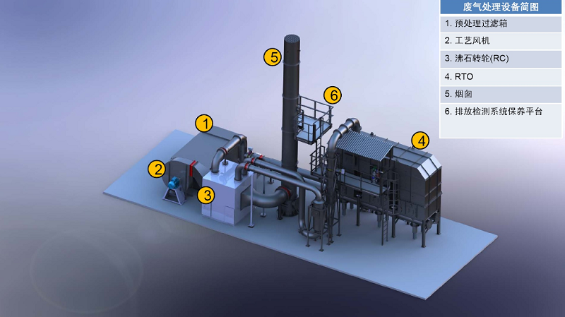 ????“多轉(zhuǎn)輪+RTO”處理工藝:兩套或多套沸石轉(zhuǎn)輪作為吸附濃縮裝置,1臺(tái)RTO(蓄熱式氧化爐,具備一定蓄熱能力的燃燒爐,通過高溫氧化的方式將氣體中的可燃物質(zhì)進(jìn)行氧化,達(dá)到使氣體凈化的目的)作為燃燒凈化裝置的VOCs處理工藝。