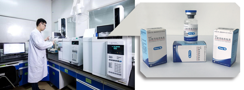 △ 研發(fā)現(xiàn)場(chǎng)(左)與注射用地西他濱樣品(右)