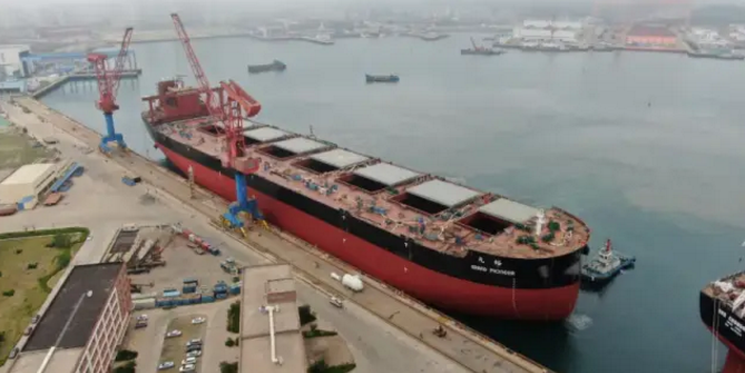 ????6月6日上午,外高橋造船為山東海運建造的18萬噸散貨船H1494船順利出塢。
