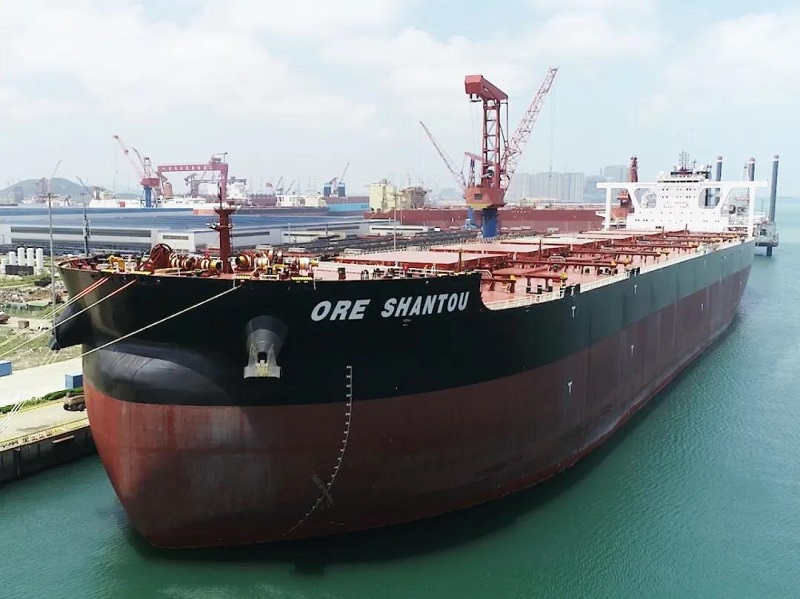 2017年年底,北船重工與工銀租賃、招商輪船簽訂了6艘32.5萬噸礦砂船建造合同。該批船交付后將用于巴西淡水河谷鐵礦石運輸,首制船“ORE YANTAI”號和2號船“ORE FUZHOU”號分別于今年2月和4月交付,本次交付的是第三艘船,后3艘船計劃于今年年底前全部交付。