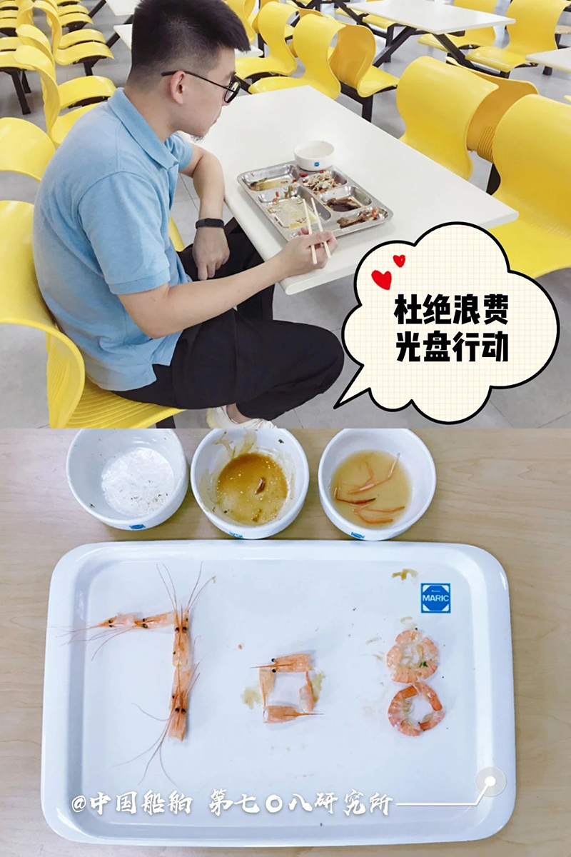 “誰知盤中餐,粒粒皆辛苦。” 自古以來 敬天惜糧、勤儉節(jié)約就是 中華民族傳統(tǒng)美德 中國船舶集團多家成員單位 用實際行動 杜絕“舌尖上的浪費”