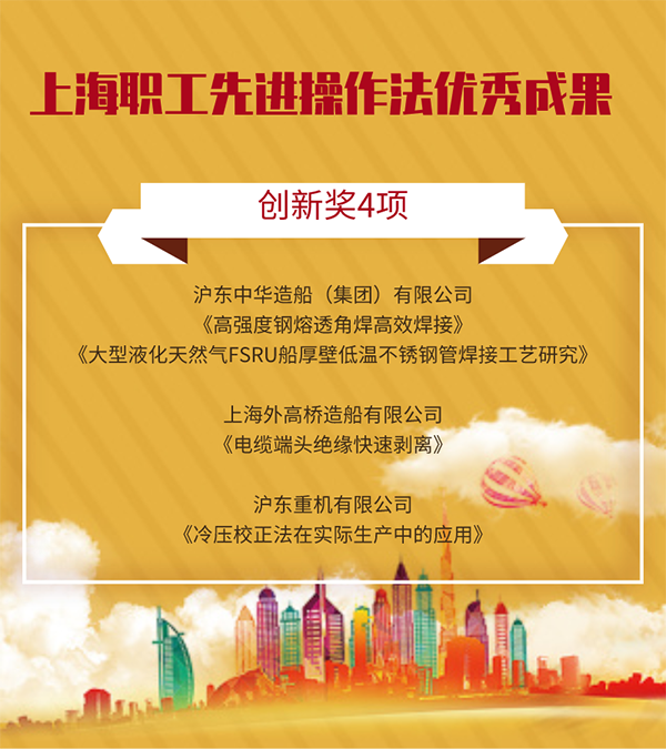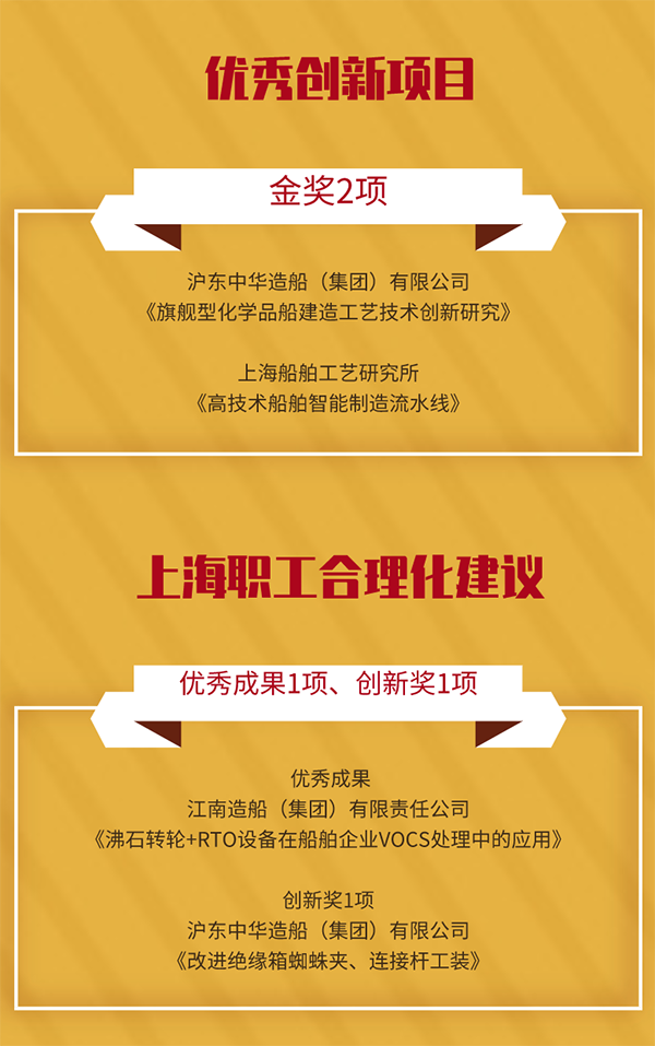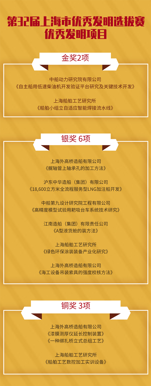 中國船舶集團(tuán)上海船舶系統(tǒng)共19項(xiàng)職工創(chuàng)新成果,在第32屆上海市優(yōu)秀發(fā)明選拔賽等各項(xiàng)賽事中斬獲佳績。