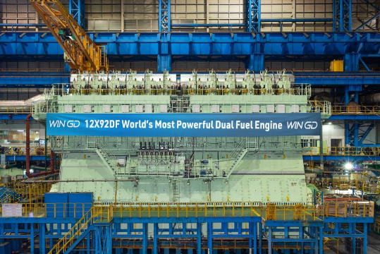 ????作為目前世界最大船用雙燃料低速機(jī),WinGD 12X92DF集超大功率、智能控制、綠色環(huán)保于一體,以優(yōu)異的性能和排放指標(biāo),引領(lǐng)世界同類型發(fā)動(dòng)機(jī)。