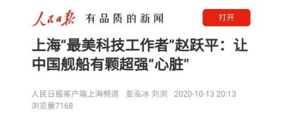 ????中國船舶集團(tuán)七〇四所首席專家趙躍平,獲評(píng)2020年上海地區(qū)“最美科技工作者”。