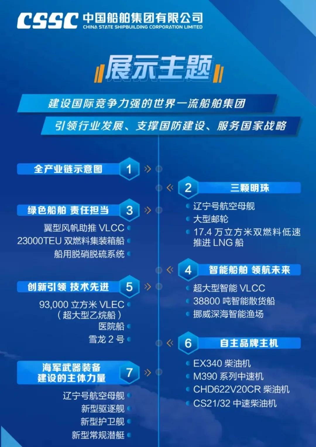 船舶海工裝備產(chǎn)業(yè)展區(qū) 分為船舶與海洋工程、船舶配套2個(gè)大區(qū),整體展示了中國船舶集團(tuán)強(qiáng)大的船舶建造能力。船舶與海洋工程分為海洋運(yùn)輸與工程裝備,海洋資源開發(fā)、海洋科考裝備,海洋漁業(yè),新開發(fā)船型與船舶改裝等六大板塊;船舶配套區(qū)包括動(dòng)力與配套、機(jī)電裝備和電子信息裝備3大部分,共展出模型及實(shí)物68個(gè),重點(diǎn)聚焦自主品牌、系列化產(chǎn)品及國際領(lǐng)先產(chǎn)品,展示了中國船舶集團(tuán)在業(yè)界最為完整齊全的船舶動(dòng)力機(jī)電配套產(chǎn)業(yè)鏈,具備提供穩(wěn)定、可靠的全動(dòng)力和配套解決方案的能力。