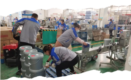 ▲熱火朝天忙生產(chǎn),第三研究室汽車(chē)防凍液生產(chǎn)車(chē)間各條生產(chǎn)線(xiàn)安全有序生產(chǎn),呈現(xiàn)一片繁忙景象。圖為工作人員按照操作規(guī)程有序生產(chǎn)汽車(chē)防凍液產(chǎn)品。